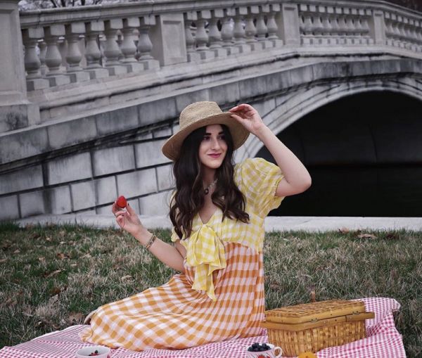 除了直观的野餐道具,野餐女郎们还需要合适的衣服进行配搭。虽然不少人会选择穿着汉服、JK、Lo装(三坑)等野餐,但在资深野餐爱好者无忌看来,穿着“三坑”服饰野餐的女孩们,都是刚入门的新手。 海外的博主们,多是穿着茶歇裙或法式风格服饰野餐,取其随意、慵懒之意。真正的野餐女郎,要根据野餐布的颜色,搭配自己的茶歇裙、鞋子和草帽。无忌特别向硬糖君说明,草帽一定不能是大沿的,而要选择休闲款,并且得是手工编织。 海外服装品牌中,西班牙的VB、法国的Isabel Marant、Rouje以及各类品牌的茶歇裙都是野餐女郎的首选。碍于价格等问题,一些做仿版的国内店家也在这一波野餐热中获利。