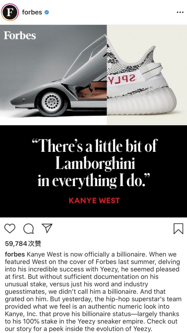 根据彭博社揭露的美国银行2019年文件显示,YEEZY品牌的估值约为30亿美元。当福布斯承认了坎耶的13亿美元资产后,坎耶还不依不饶地向福布斯抱怨,“你们算错我的身家了。我的身家远超过30亿美元”