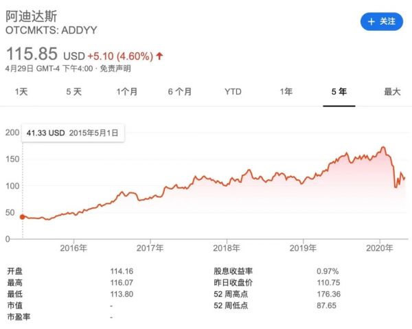 阿迪达斯股价屡创新高