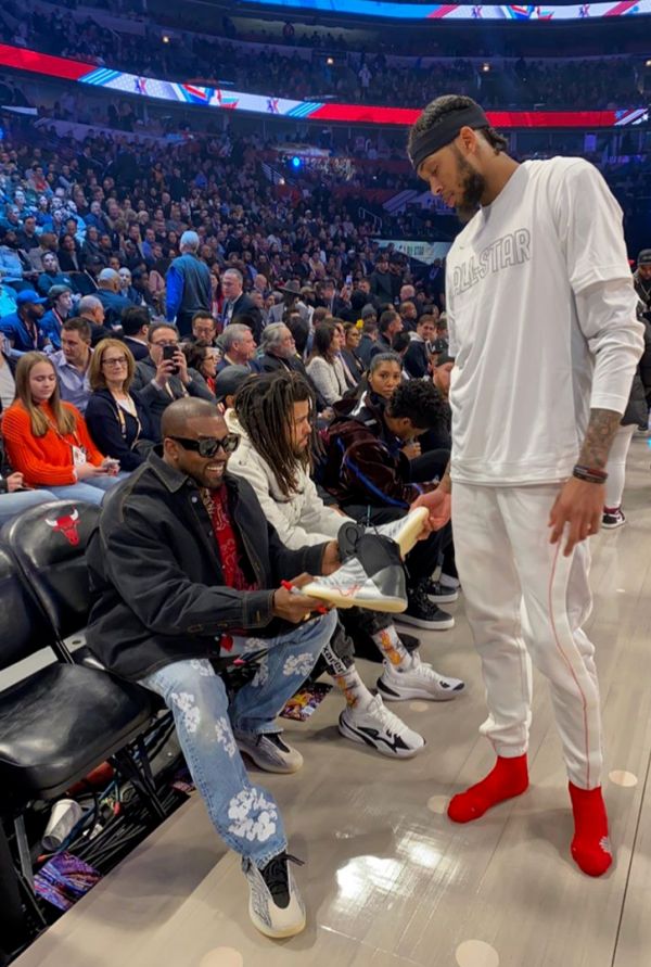 阿迪达斯签约球员英格拉姆身穿YEEZY篮球鞋向坎耶索要签名