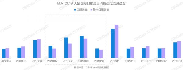 值得一提的是,口服美容品类在近一年内的消费增速,远高于各个品类的平均增速。女性毫不意外地成为口服美容消费的主力军,且人数占比逐年提升;其中一二线城市的90后、95后的年轻女性近一年已超过50%。