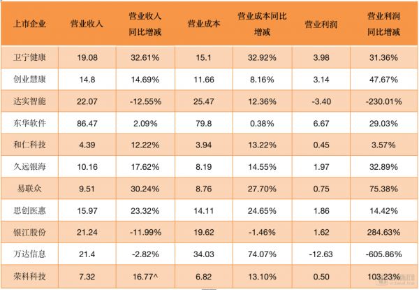 注:仅卫宁健康和思创医惠数据来源于企业年报,其余数据来源于企业年报快报