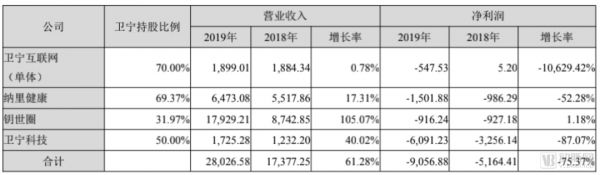 卫宁持股比例指卫宁健康及其控股子公司合计持股比例(数据来源于卫宁健康2019年年报)