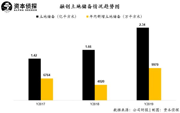 在土地储备方面,融创2019年新增土储 0.73 亿平方米,同比增长 51.45%。截至2019年底,融创在手土储2.39亿方,货值3.07亿万元,权益土储1.53亿平方米。