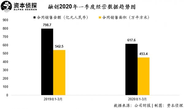 根据融创4月初发布的公司一季度经营数据,融创1-3月份累计合约销售金额617.6亿元,较去年同期减少22.7%;累计合约销售面积453.4万平方米,同比减少16.4%。疫情对融创一季度的业绩产生了较大的负面影响。