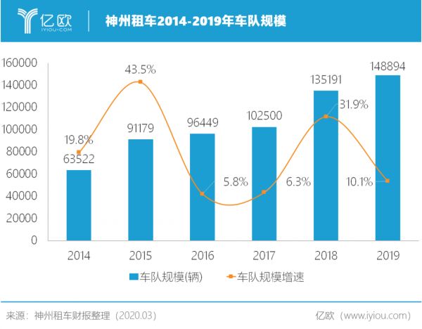 上市后的神州租车,由此打开了盈利的大门。规模也在不断扩张:截至2019年年末,神州租车的车队总规模为148894辆,而这已是6年前的2倍。