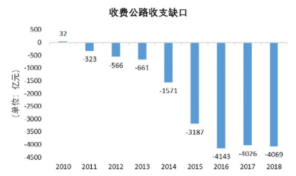 截至2018年,收费公路收支缺口达到4069亿元。在总支出9622亿元中,80%的支出是还本付息支出。即收费公路行业2018年需要还本付息7715亿元。