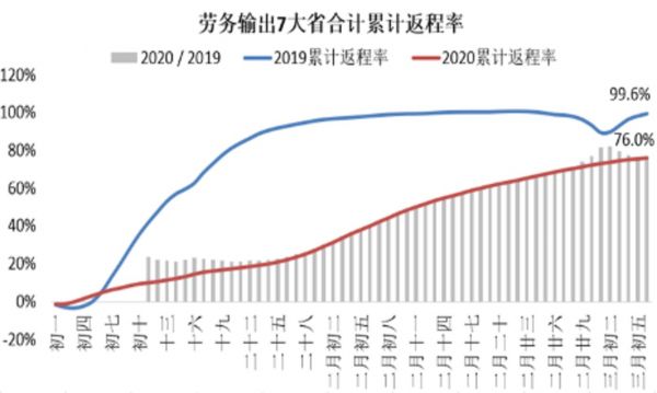 根据百度迁徙数据监测,劳动人口大省返程率仍在提升,复工复产尚未完全结束。