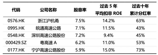 最后,我们按照股息率排序,梳理了过去五年平均扣非ROE超过9%,过去十年累计分红率超过40%的公路股,构筑了如下的优质高分红公路组合,供投资者参考。