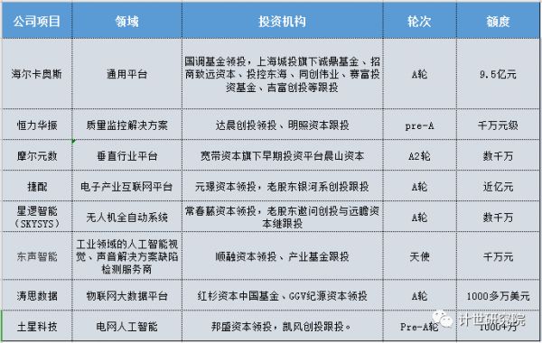 其中,最引人注目的是通用平台项目海尔卡奥斯,以9.5亿元的融资规模刷新了国内工业互联网行业A轮融资金额最高记录。