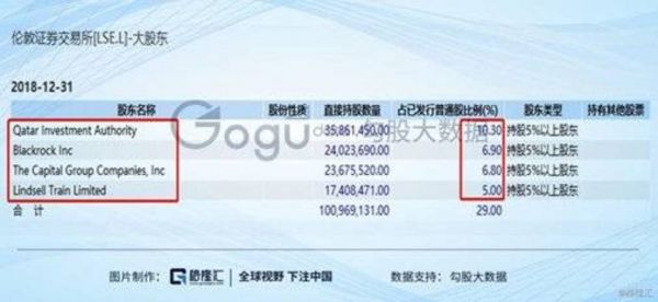 伦交所主要股东(持股5%以上)列表,包括卡塔尔主权基金、巴克莱基金、美国Capital Group、以及英国Lindsell Train基金等,图片来源:Wind