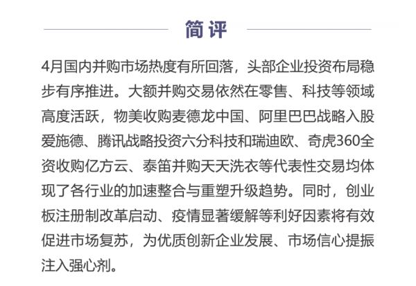 4月新经济并购月报:疫情复苏后第一波红利谁摘得? 巨头布局稳中有进