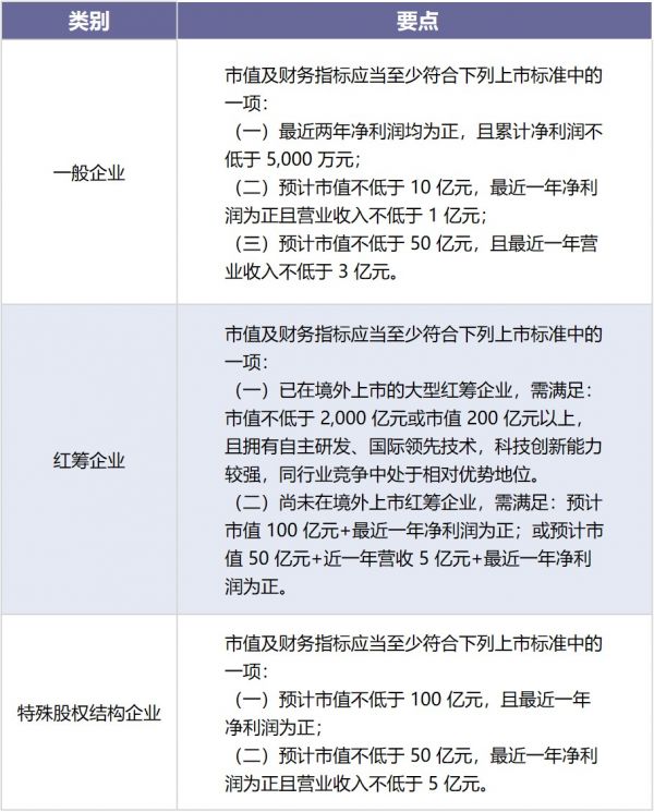 创业板旨在服务于成长期创新创业企业,支持传统产业与新技术、新业态、新模式的深度融合,有利于相关优质创业企业的上市定位错位竞争,是自科创板出台以来的又一项重大利好政策。本次征求意见稿提供了更加多元包容的上市标准,具体要求如下:
