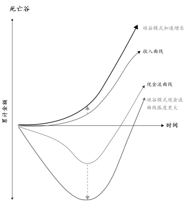 硅谷的不同之处在于增长先于盈利。企业的生存离不开风险投资,这意味着死亡谷的坑也更深。最后只能是不成功便成仁。