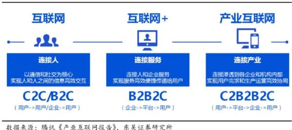 B2B、C2C、B2C 原本只是简单的撮合成交,互联网只起到连接的作用,以降低信息不对称,但随着互联网对商业影响的深化,互联网开始对商业赋能。