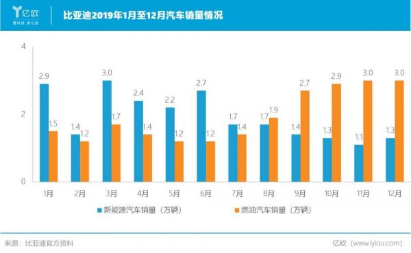 补贴滑坡,比亚迪骑虎难下,只能临时采取措施自救,通过提高燃油车销量“对冲”新能源汽车销量下跌,这一变化以2019年7月为分水岭。