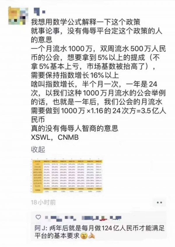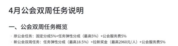 意味着公会想要拿到最高奖励的分成,就要做比以前多出数倍的事情,而期限却又被缩短了一倍,从按月结算变成双周结算。