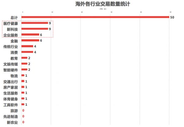 交易数量:该7日交易数据表明:排名前三的一级行业分别是:医疗健康、新科技与企业服务,其中Top3行业交易数量占总交易数量的48.00%。
