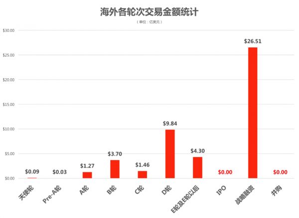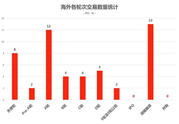 交易数量:近7日交易周期内数据研究表明,海外交易数量主要集中分布于早期与战略融资阶段。