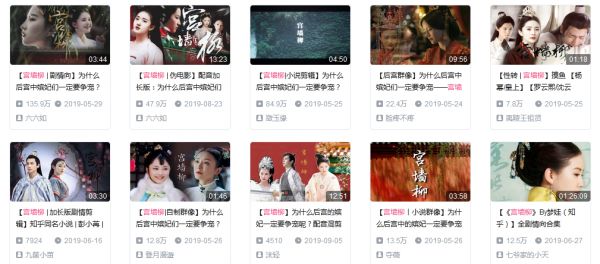 还有B站影视剪辑区已经出了几十个版本的《宫墙柳》,原作是知乎问题“为什么后宫中嫔妃们一定要争宠”的高赞答案。