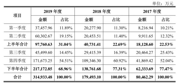 此外,2017至2019年奇安信在第四季度主营业务的收入占比均在50%以上,呈现显著的季节性特征,且主要在第四季度实现。