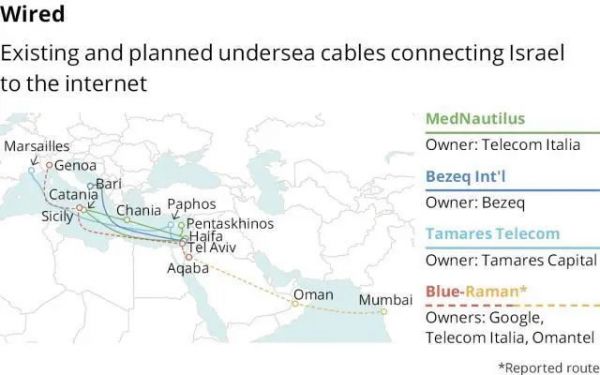 Haaretz表示,预计这条新海缆在未来对以色列也至关重要。MedNautilus海缆已经有20年历史,再有10年将退役,另外两条海缆也已接近使用10年。Blue-Raman一旦建成,将服役30年。