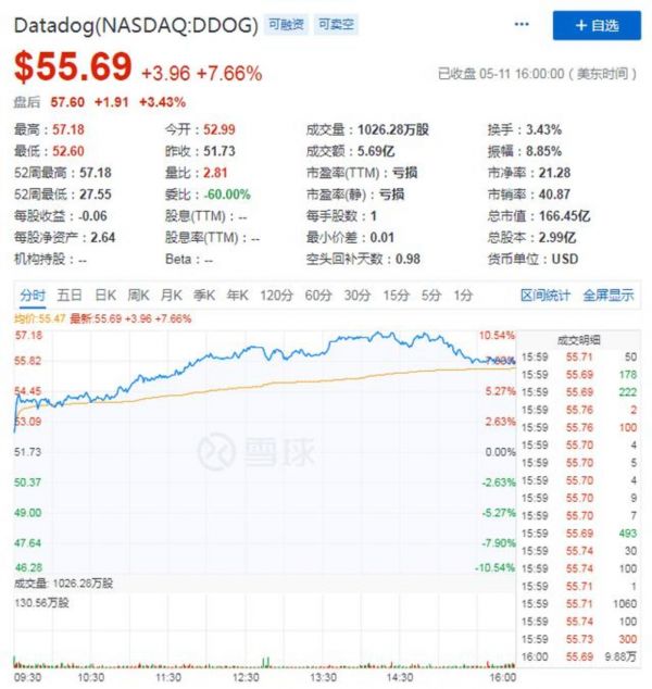 在财报发布后,截止文章发稿,DataDog盘后股价为57.60美元,盘后股价涨了3.43%,总市值为166.45亿美元。