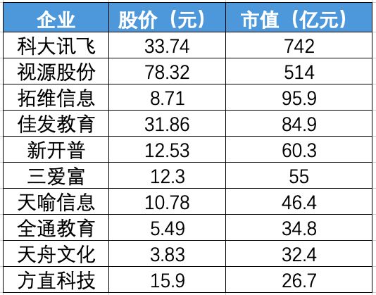 (目前主要的 A 股教育信息化上市公司)