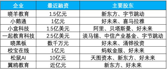 和大公司一起想切分公立校蛋糕的,还有一部分创业公司。目前创业公司中相对头部的企业主要分为三类:一类是内容提供商,如小盒科技和一起教育科技,以作业题库工具方式切入,这个领域的玩家还有猿题库和作业帮,但这两家企业还有其他培训业务,所以未单独列举;一类是数据提供商,如翼鸥教育和小鹅通,这次最直接的运用就在于提供直播系统进行教学辅导;最后一类是家校互通类。