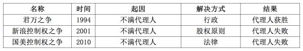 1994年君万之争、新浪控制权之争、国美控制权之争皆属此类。