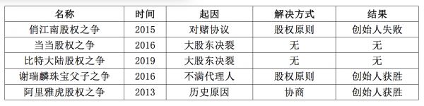 俏江南股权之争、当当股权之争、比特大陆股权之争、谢瑞麟珠宝父子之争、阿里雅虎股权之争属于此类。