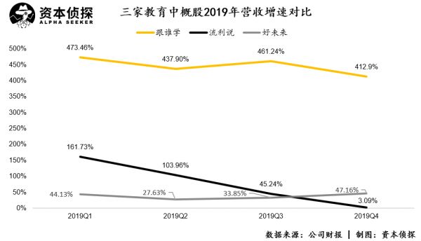 按照财报披露的数据,跟谁学的营收增速远超同行。对比之下,好未来在2019年四个季度的营收增速分别为44.13%、27.63%、33.85%、47.16%;而同期以在线英语为主业的流利说营收增速为161.73% 、103.96% 、45.24% 、3.09%。