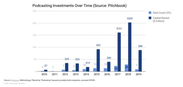 我不知道大家有没有看过A16Z(Andreessen Horowitz),他们也在布局音频市场。他们发了一篇分析(https://a16z.com/2019/05/23/podcast-ecosystem-investing-2019/ ),解释为什么要开始布局播客。它对播客的定义是更广义的,有声音频都包括在内。
