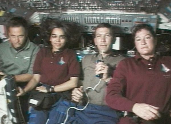 哥伦比亚号航天飞机的部分机组人员接受太空采访,图片来自Gizmodo