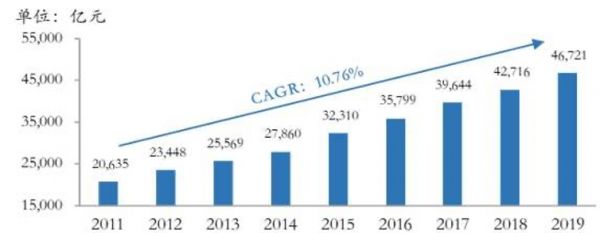 2011-2019我国餐饮行业市场规模
