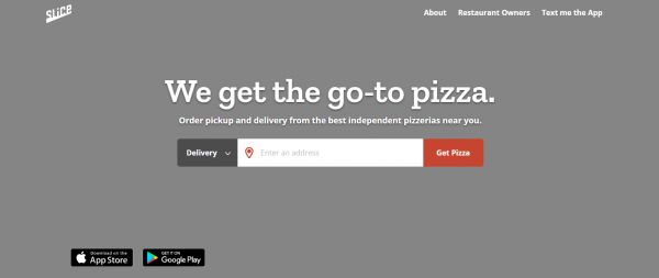在过去,披萨店只能靠电话来接单,Slice 为这些线下的披萨店提供网上预订途径,商家可以在网上接单。消费者能通过 Slice 的网站或App搜索附近的披萨店,然后在线上进行预定,披萨店会亲自配送,配送费为2.25美元/单。