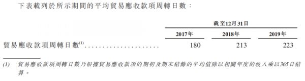 公司一般给予客户的信用期最长为180天,而2017-2019年,公司贸易应收款项的周转天数逐年攀升,拉长至223天。