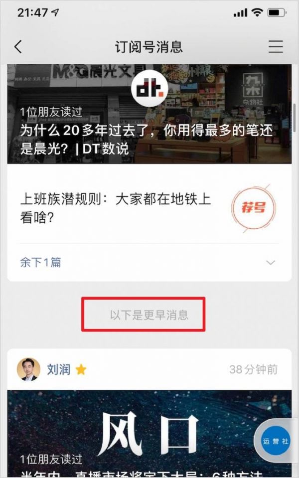 比如,我关注的订阅号中,最新推文的明明是“丁香医生”,但是因为“刘润”被推荐到了第一位,于是列表消息中,预览的内容也是“刘润”的。