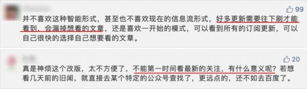 包括我们编辑部的一位同学也表示,改版之后,发现信息获取的难度加大了。以前会在特定时间打开订阅号搜寻,现在想看的内容都不知道被挤到哪里去了。如果看订阅号列表的话,又看不到次条内容。