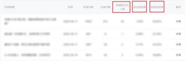 其次,后台“单篇群发”的数据维度增加了阅读后关注人数、送达阅读率(打开率)和阅读完成率。
