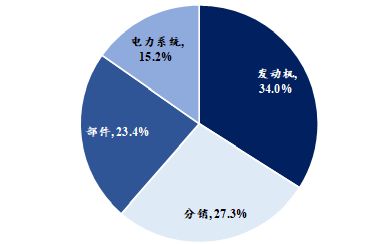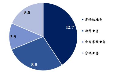 康明斯的业务范围除发动机和动力总成外,还包括动力总成相关的部件和电力系统,以及分销业务,2019年营收占比分别为23.4%、15.2%、27.3%。