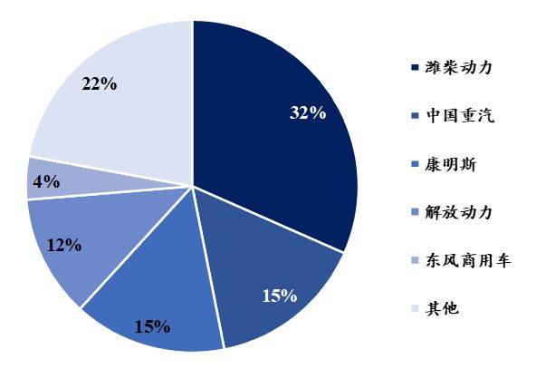目前,除一汽解放和中国重汽采用自有发动机提供商解放动力和济南动力之外,市场大部分整车厂商均与潍柴动力有合作。