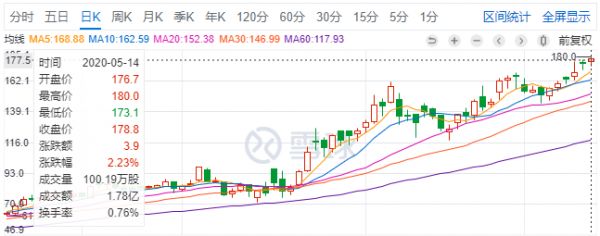 5月14日盘中,截至发稿,香港恒生指数盘中跌1.49%,康希诺生物-B(06185.HK)逆势上涨2.23%,报178.8港元,创上市以来股价新高,市值达到398.10亿港元。