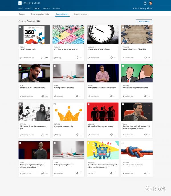 LinkedIn Learning作为超过1700万的企业用户,目前已经向外部内容开放了平台。它是一个基于面板、高度人工智能驱动的学习平台,因此对于许多小公司来说,它将充当LXP。它已经发展成为一个令人惊叹的系统,与LinkedIn整合在一起(LinkedIn提供了比人力资源管理系统更详细的员工信息)。