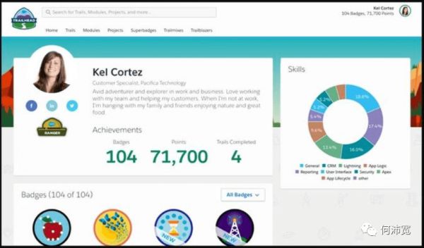 Salesforce MyTrailhead是建立在Trailhead(Salesforce为各种技术和Salesforce培训提供的免费平台)非常引人注目的用户体验之上的,它本质上是LXP的一种形式。它确实有一个教学设计工具,但他们所做的一切,我认为它非常适合许多类似LXP的培训需求。我非常喜欢Trailhead的用户体验,所以大多数Salesforce客户都会想看看。
