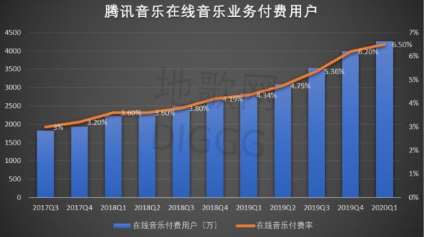 数据对比上更显而易见。行业统计数据显示,目前主流音乐平台(QQ音乐、网易云音乐等)的版权成本,自2013年以来飙升了50多倍;但从2017Q1到2020Q1,腾讯音乐在线音乐业务的付费率仅由2.5%增长到6.5%。