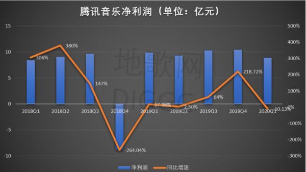 腾讯音乐总营收,地歌网制图