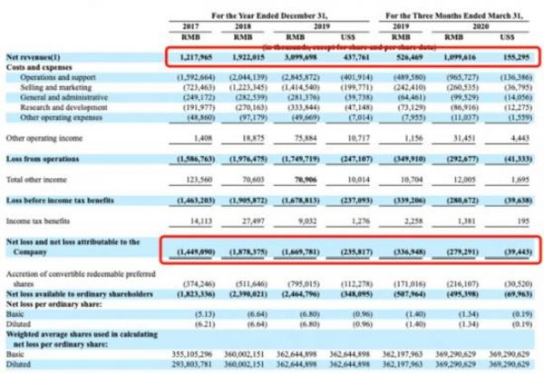 据招股书披露,过去三年,达达的净营收一直持续增长,2017年为12亿,2018年为19亿,2019年就达到了31亿。但是,在营收持续增长的情况下,达达集团的亏损也是持续扩大的,2017年净利润为-14亿,2018年净利润为-19亿,2019年亏损为-17亿,三年累计亏损达50亿。