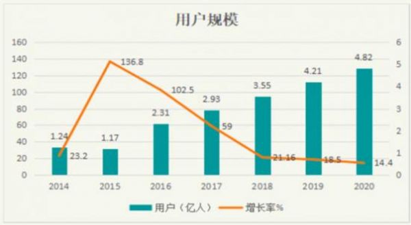从用户规模上更能反映问题,2019年预计用户达到4.21亿,但到2020年,用户的增长率仅14.4%,大约4.82亿人。
