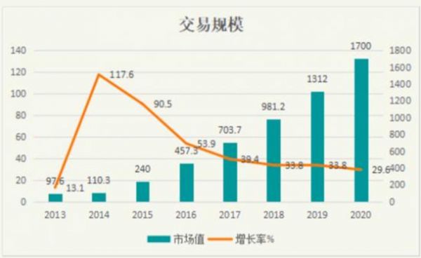 从联商网发布的《2019年即时配送发展报告》中可以看到,2018年即时配送市场交易规模为981.2亿,2019年预计为1312亿,到2020年可达1700亿。